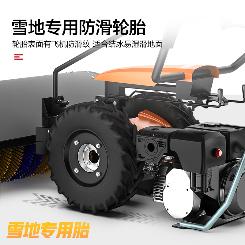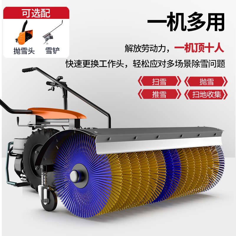 揚子YZ-SXJ002手推式掃雪機解決積雪難清掃問題,快速更換工作頭實現多功能適用,握把調節速度,輕松面對各種地面